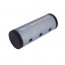 Fabricado em alumínio anodizado com corpo grafite e tampas pretas.